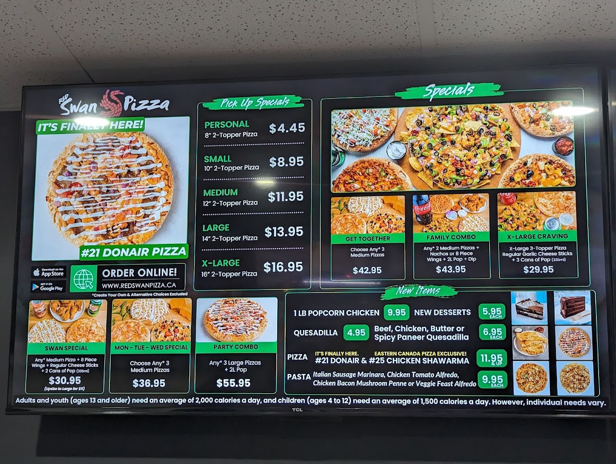 The cuisine here can best be described as a heartwarming blend of traditional pizza flavors and innovative toppings, creating a diverse menu that caters to every palate. Whether you're craving a classic pepperoni pie or feeling adventurous enough to try their Paneer Tikka Pizza, you're in for a treat. With their Swan Specials, such as the Large Swan Special that includes a large pizza, eight wings, cheese sticks, and two cans of pop for only CA$45.95, you'll not only enjoy a mouthwatering meal but also incredible value.